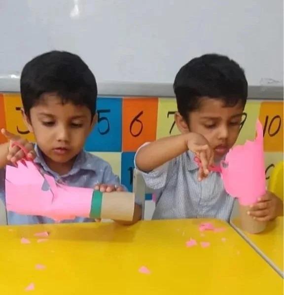 Here at Exemplar, we teach discrete subjects like English, Maths, Science, Malayalam, Hindi, Physical Education and Crafts. Each subjects has its own curriculum for ages 18 months to 6 years. Free play, snack time and outdoor play are included in the time table. The classes are taught in year groups.